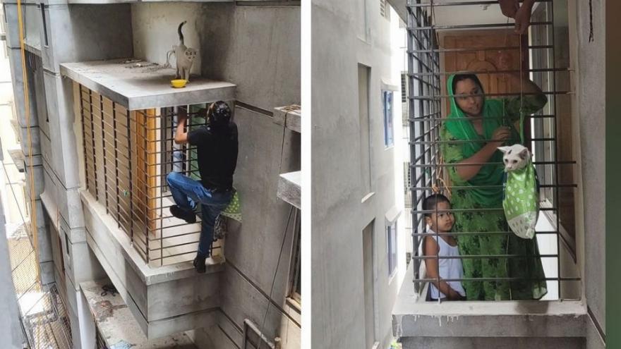 Στις 17 Μαΐου στη Ντάκα του Μπαγκλαντές, αυτός ο άνδρας διακινδύνευσε τη ζωή του σκαρφαλώνοντας τέσσερις ορόφους έξω από ένα κτίριο για να σώσει ένα γατάκι (η κάθοδος διασώθηκε από έναν από τους ιδιοκτήτες του διαμερίσματος).