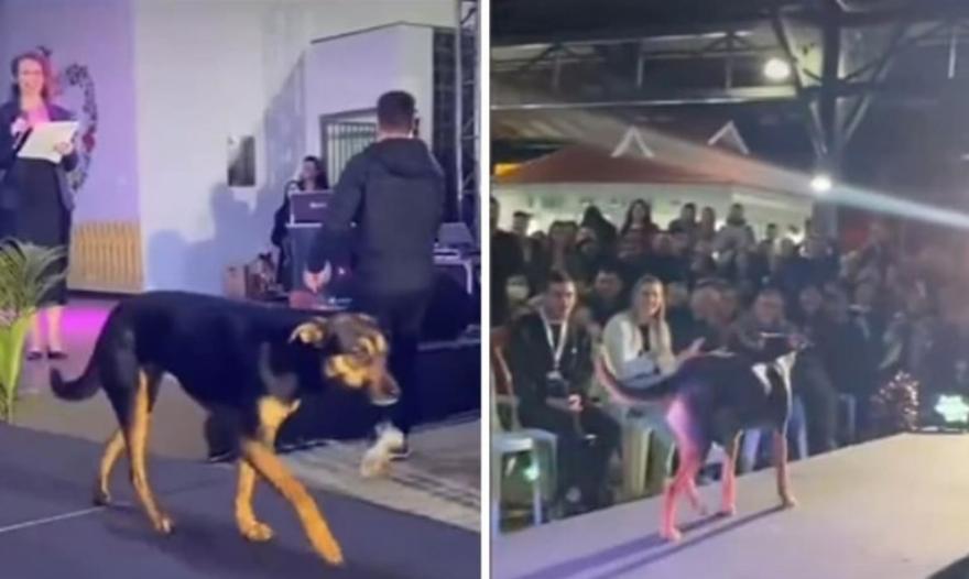 Ένας αδέσποτος σκύλος έκανε μια απροσδόκητη εμφάνιση στην πασαρέλα στον διαγωνισμό Miss São Mateus do Sul στη Βραζιλία και έκλεψε την παράσταση.