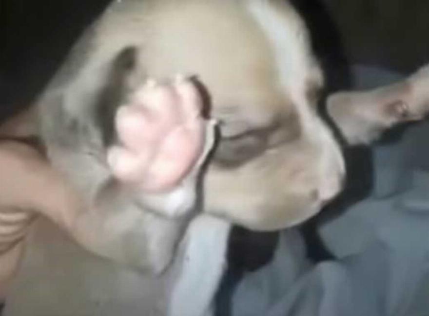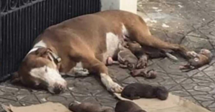 Η σκυλίτσα γέννησε αλλά ήταν στα πρόθυρα του θανάτου.Εκανε τα πάντα για να προστατέψει τα κουτάβια της.Ενα γείτονας μόλις είδε τι συμβαίνει την έφτιαξε ένα χαρτόκουτοκαι την μετακίνησε για να γεννήσει με περισσότερη ασφάλεια.