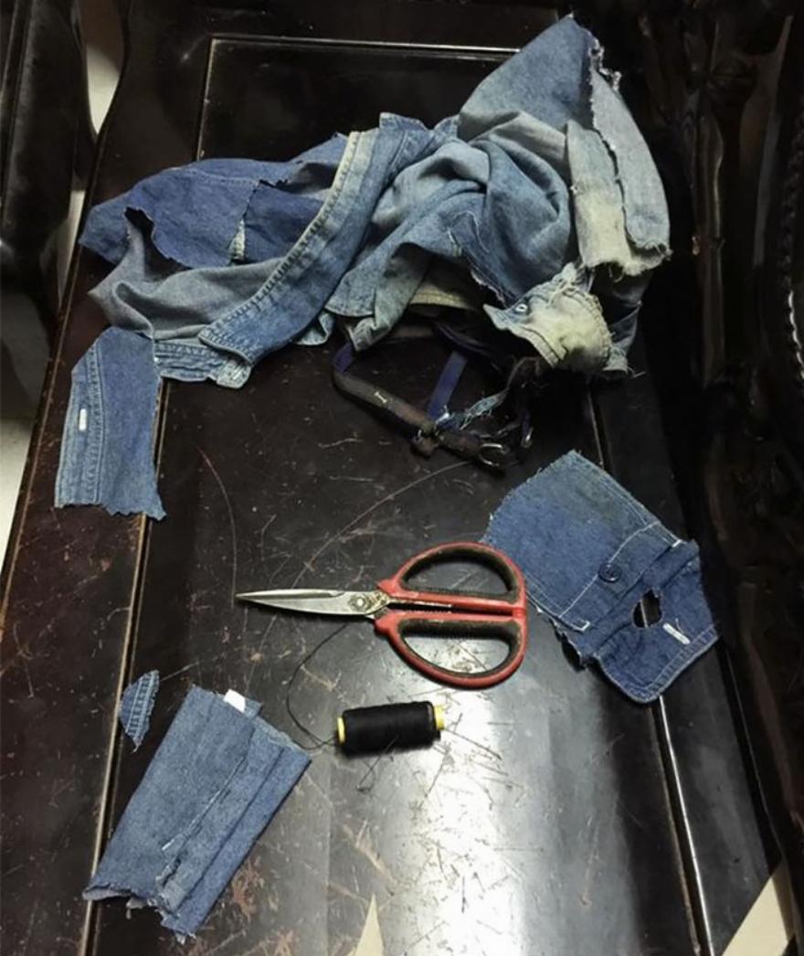 Γι’ αυτό πήρε ένα παλιό τζιν μπουφάν του, ένα ψαλίδι…