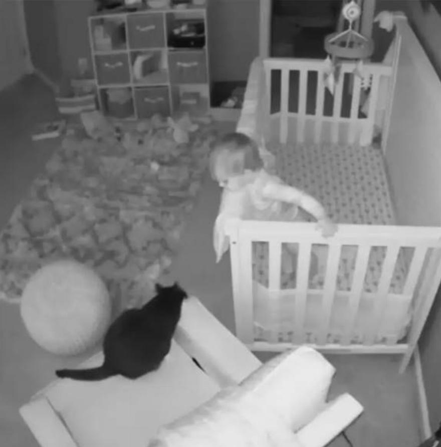 Μια κάμερα καταγράφει τον διάλογο μεταξύ μιας γάτας και ενός μωρού