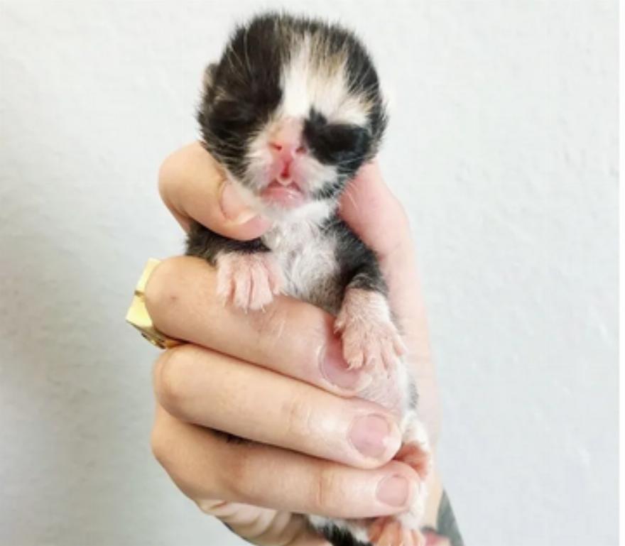 Το μικροσκοπικό calico γατάκι ήταν μόλις λίγων ωρών όταν μεταφέρθηκε σε ένα καταφύγιο στην Καλιφόρνια. Ο Chris, ένας διασώστης ζώων από το Λος Άντζελες, άρχισε αμέσως να τη ζεσταίνει, καθώς κρύωνε.