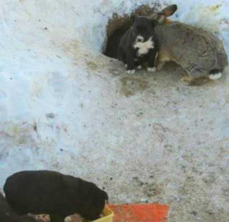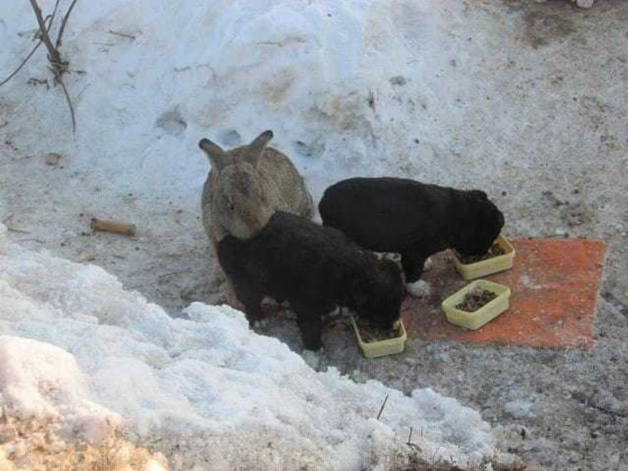 Το κουνέλι υιοθέτησε 3 αδέσποτα κουτάβια