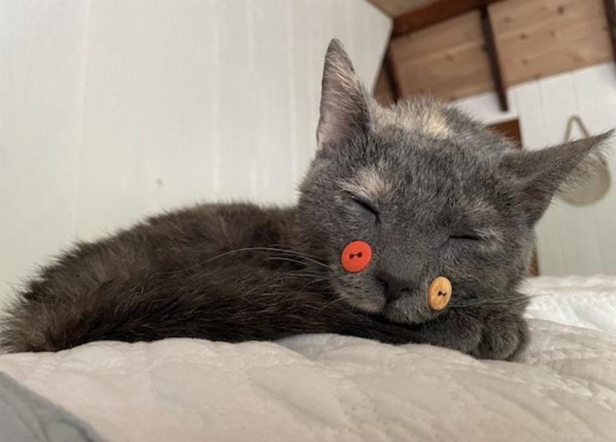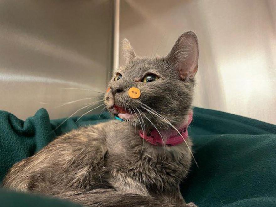 Ένα γλυκό γατάκι που χτυπήθηκε από αυτοκίνητο χρειάστηκε να κρατηθεί το σαγόνι του με κουμπιά μέχρι να επουλωθεί. Τώρα, 7 εβδομάδες μετά τη διάσωσή της, είναι έτοιμη να φάει το πρώτο της στερεό γεύμα.