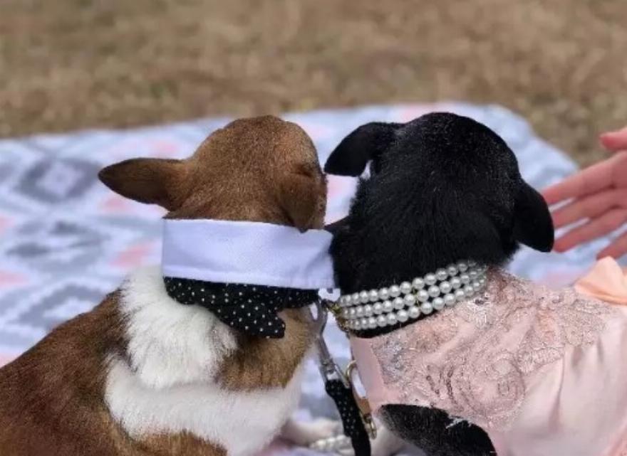 Η διάσωση μπόρεσε να πάρει ένα νυφικό από δωρεά και αυτό ταίριαζε τέλεια στην Pee Wee. Έντυσαν τον Zachary με ένα χαριτωμένο σμόκιν, πήγαν το ζευγάρι έξω, έστρωσαν μια κουβέρτα …