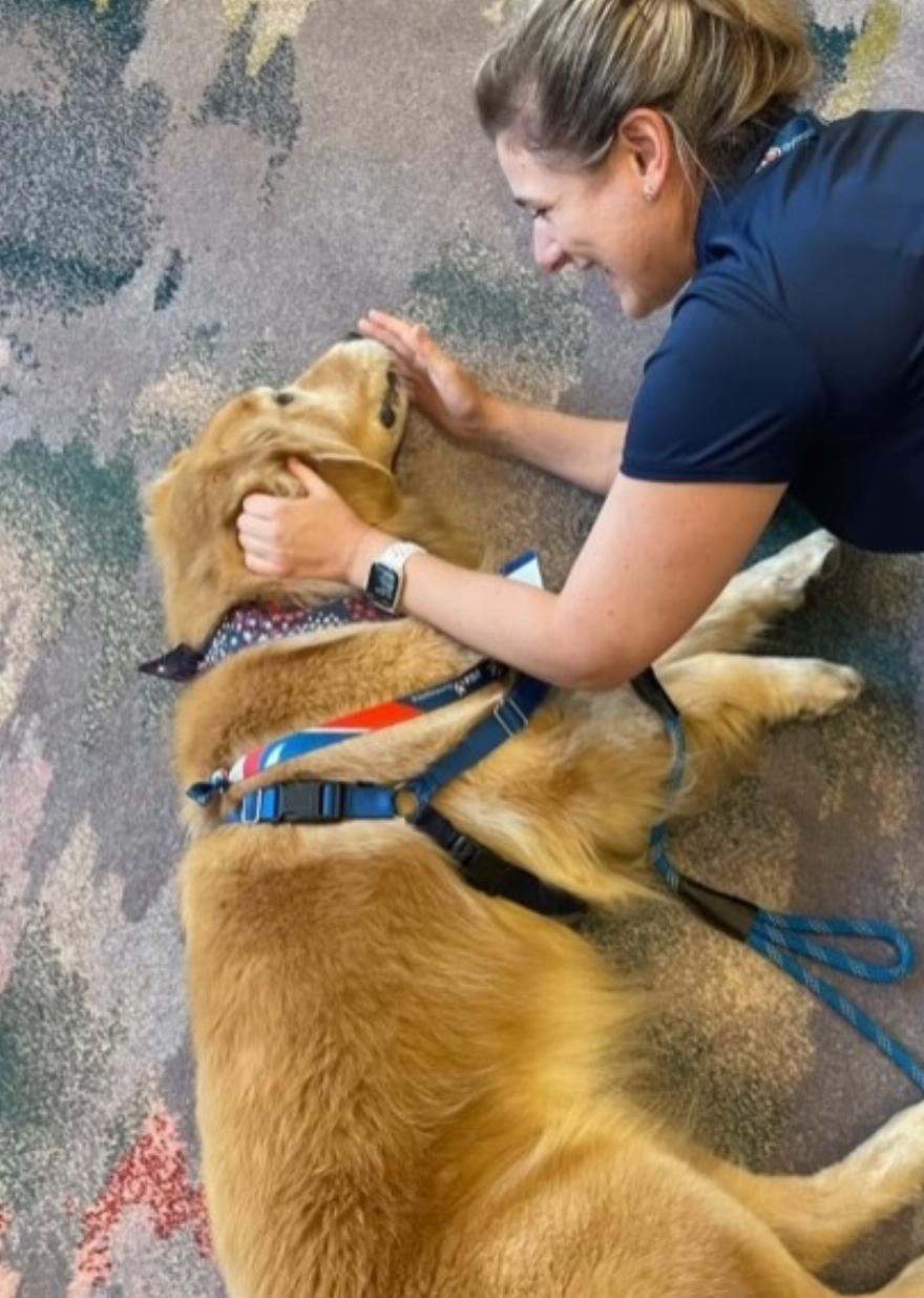 Το τετράχρονο γκόλντεν ριτρίβερ Beacon είναι ο πρώτος σκύλος θεραπείας της USAG -έλαβε μάλιστα τα δικά του διαπιστευτήρια για τις δοκιμές. Η USAG τον προσέλαβε με μερική απασχόληση για να παρηγορεί τους γυμναστές και το προσωπικό. Ο ρόλος του Beacon ήταν ζωτικής σημασίας κατά τη διάρκεια των δοκιμασιών στη Μινεάπολη, όπου οι γυμναστές διαγωνίστηκαν για μια θέση στην ομάδα των ΗΠΑ για τους Ολυμπιακούς Αγώνες του Παρισιού.