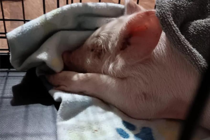 Ένα γουρουνάκι είχε μια δεύτερη ευκαιρία στη ζωή, αφού έπεσε από φορτηγό, πιθανότατα καθ’ οδόν για σφαγή.