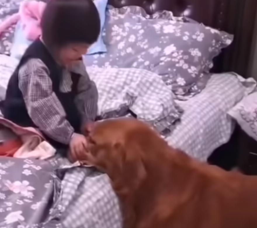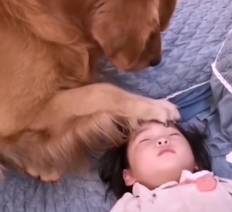 Αυτός ο αξιολάτρευτος σκύλος φροντίζει το κοριτσάκι σαν να ήταν δικό του!