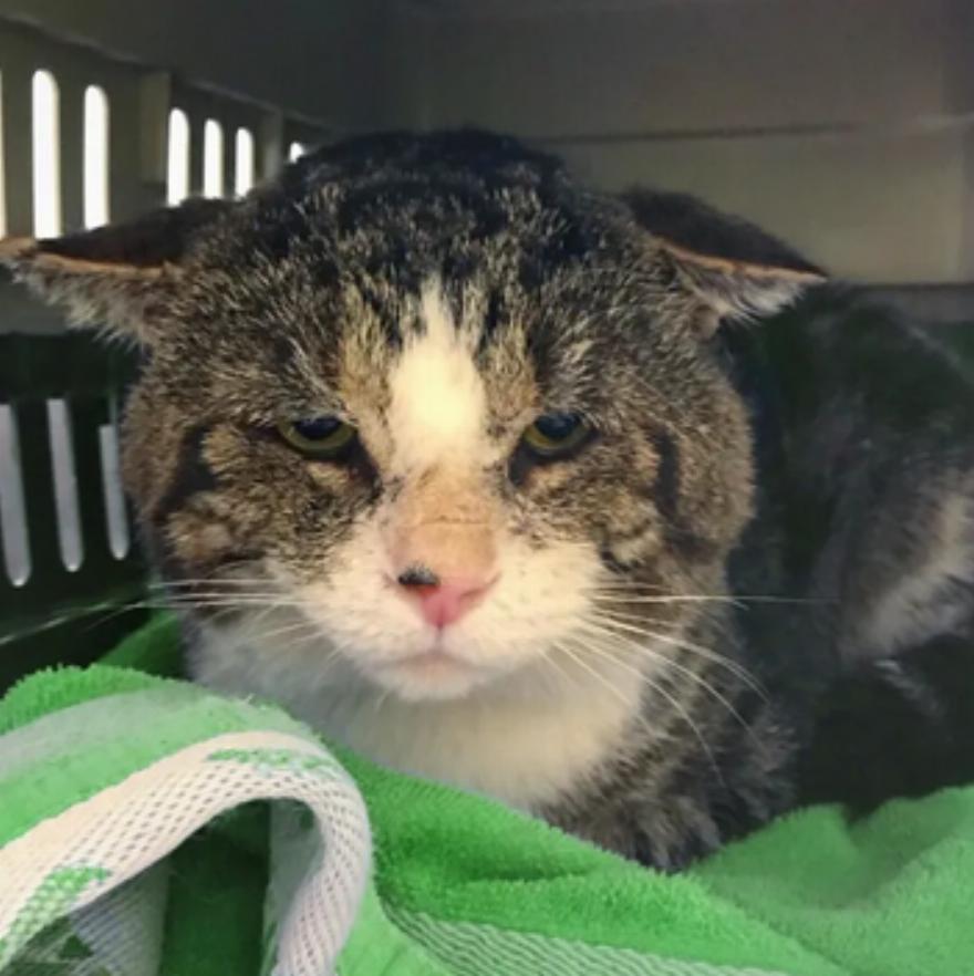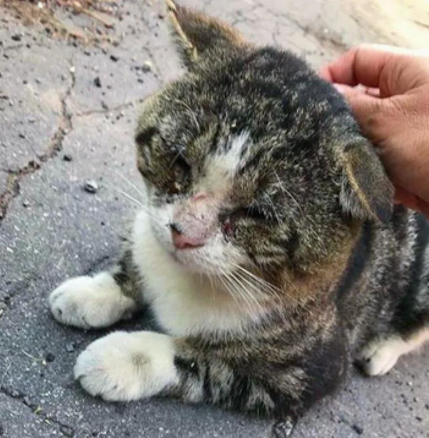 Ο γάτος tabby ήταν γεμάτος ουλές μάχης. Η ζωή ήταν δύσκολη για τον μικρό. Πολλοί άνθρωποι τον έβλεπαν να περιπλανιέται στους δρόμους της γειτονιάς (του Μόντρεαλ του Καναδά) αλλά τον προσπερνούσαν.