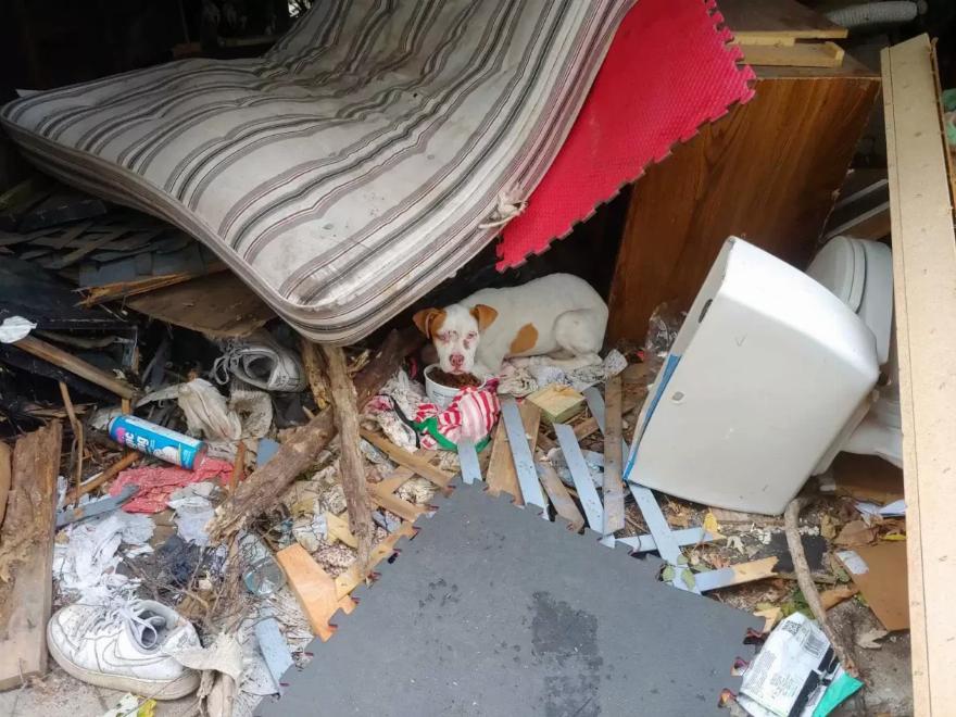 “[Υπάρχει] ένα σούπερ καλό ζευγάρι που ζει στην περιοχή, και ο σύζυγος είχε προφανώς βγει στο σοκάκι για να πετάξει κάποια σκουπίδια”, δήλωσε στο The Dodo η Donna Lochmann, διασώστρια του Stray Rescue of St. Louis. “Όταν ο σύζυγος βγήκε έξω, παρατήρησε ότι αυτός ο λευκός σκύλος είχε βρει καταφύγιο κάτω από αυτή τη γωνία ενός στρώματος … και του έδωσε λίγο φαγητό και νερό”.