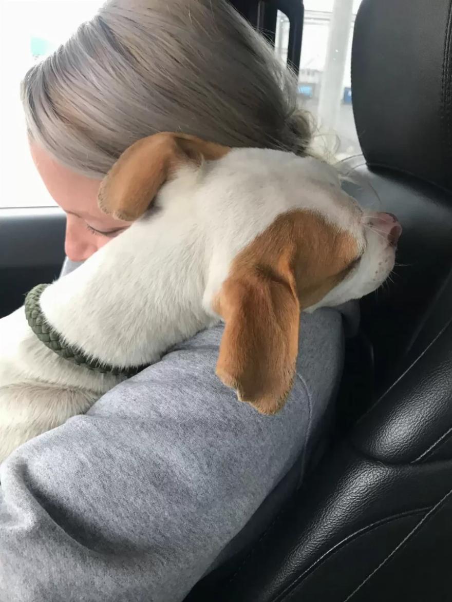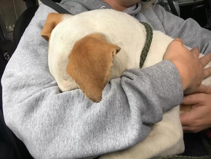 Ο Chowder αγκάλιασε τους διασώστες του σε όλη τη διαδρομή προς το καταφύγιο, σαν να ήξερε ότι ήταν επιτέλους ασφαλής.