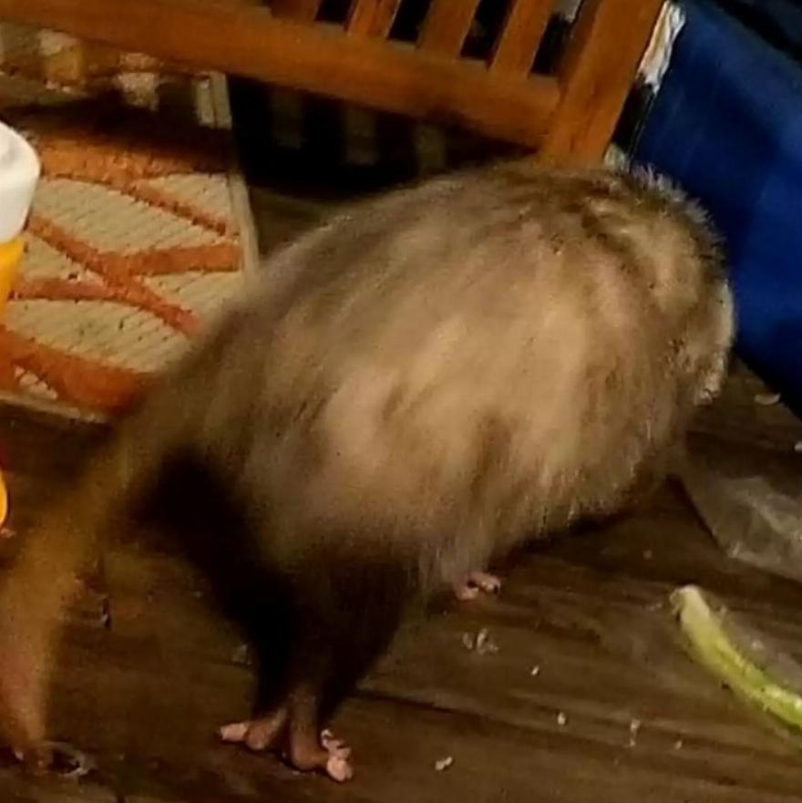 Αφού πιάστηκε από τον νόμιμο ιδιοκτήτη του φαγητού, το παχουλό πόσουμ αποφάσισε τελικά να το σκάσει.