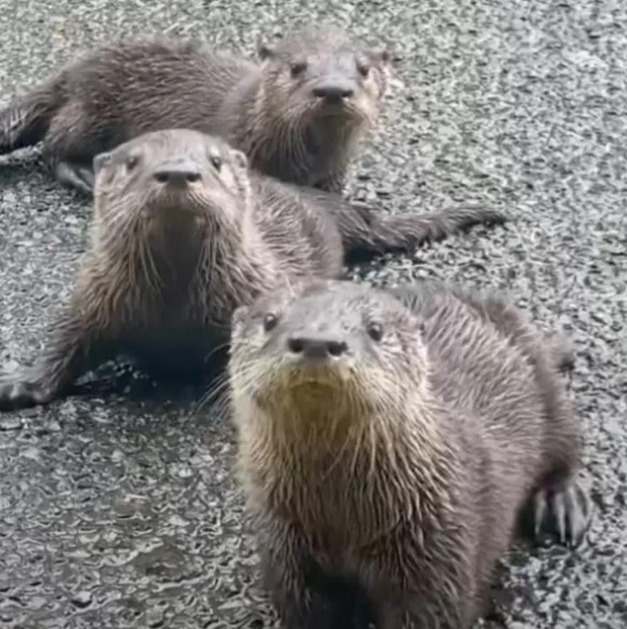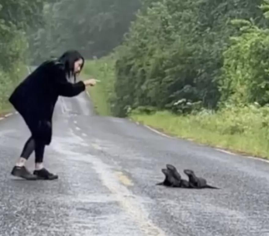 Καθώς πλησίαζε, τις είδε – τρία μικρά ενυδρίκια που είχαν ξεμείνει στο δρόμο.