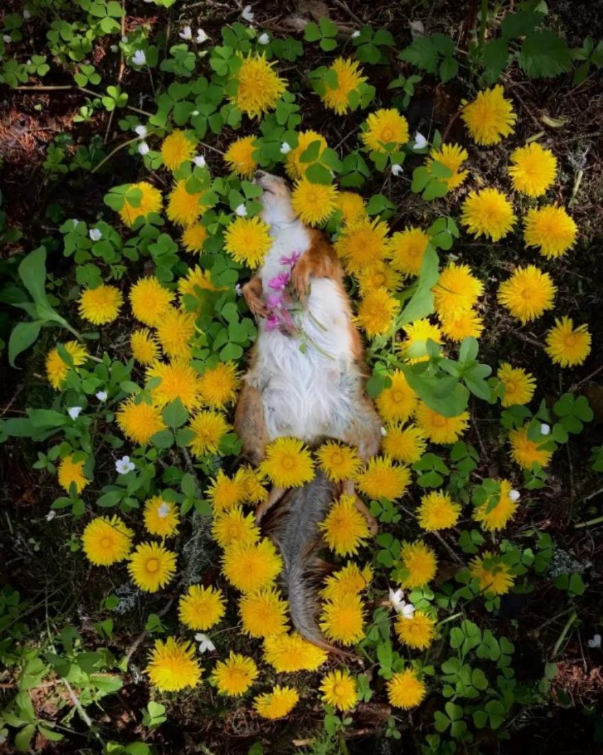 Έχει αναλάβει το ρόλο της “μαμάς” σε μια ομάδα μικρών σκίουρων που την είχαν περισσότερο ανάγκη.