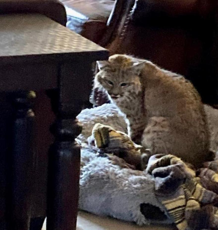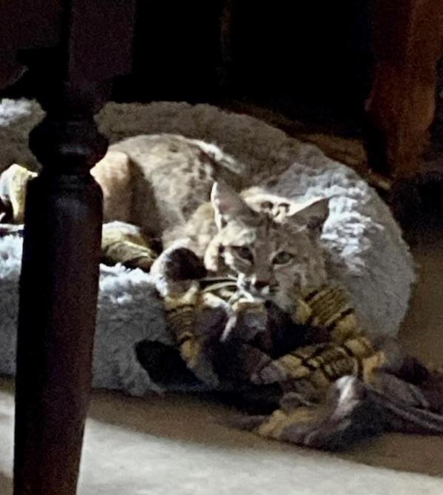 A bobcat lounges on a dog bed in San Manuel home Mon. The homeowner, who found it upon returning from work, suspects it entered through an unlocked doggie door. The bobcat escaped before an officer arrived. Don’t handle entrapped/hurt wildlife yourself. Call 623-236-7201 ASAP. pic.twitter.com/zcQFD4m08h