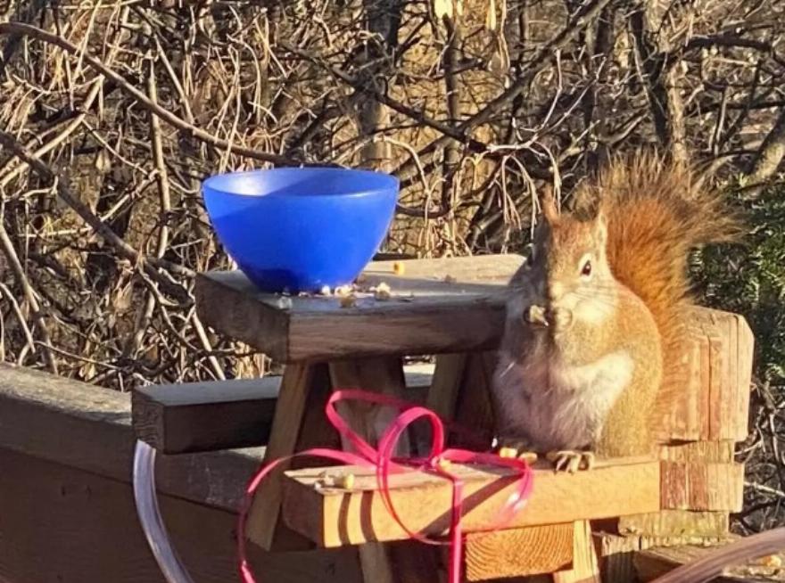 Τον τελευταίο χρόνο περίπου, η Katy Morlok αφήνει φαγητό για έναν παχουλό σκίουρο που ζει στην αυλή της. Τα παιδιά της τον ονόμασαν Lil Red.
