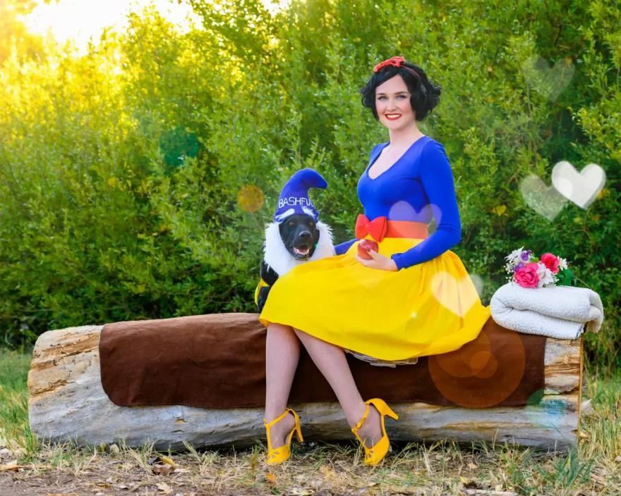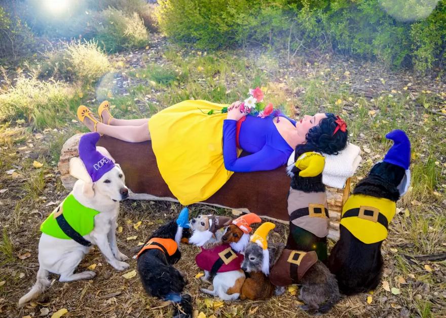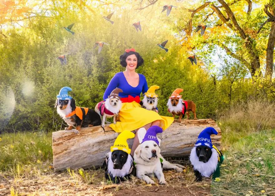 “Αυτό το Halloween είναι η πρώτη χρονιά με τα επτά σκυλιά, οπότε θέλαμε να βρούμε έναν τρόπο να τα ενσωματώσουμε όλα”, είπε. “Αρχικά θα τους κάναμε χαρακτήρες από το ‘Teenage Mutant Ninja Turtles’ … αλλά μετά πρότεινα το ‘Η Χιονάτη και οι επτά νάνοι’. Ήταν πολύ τέλειο για να το προσπεράσουμε!”
