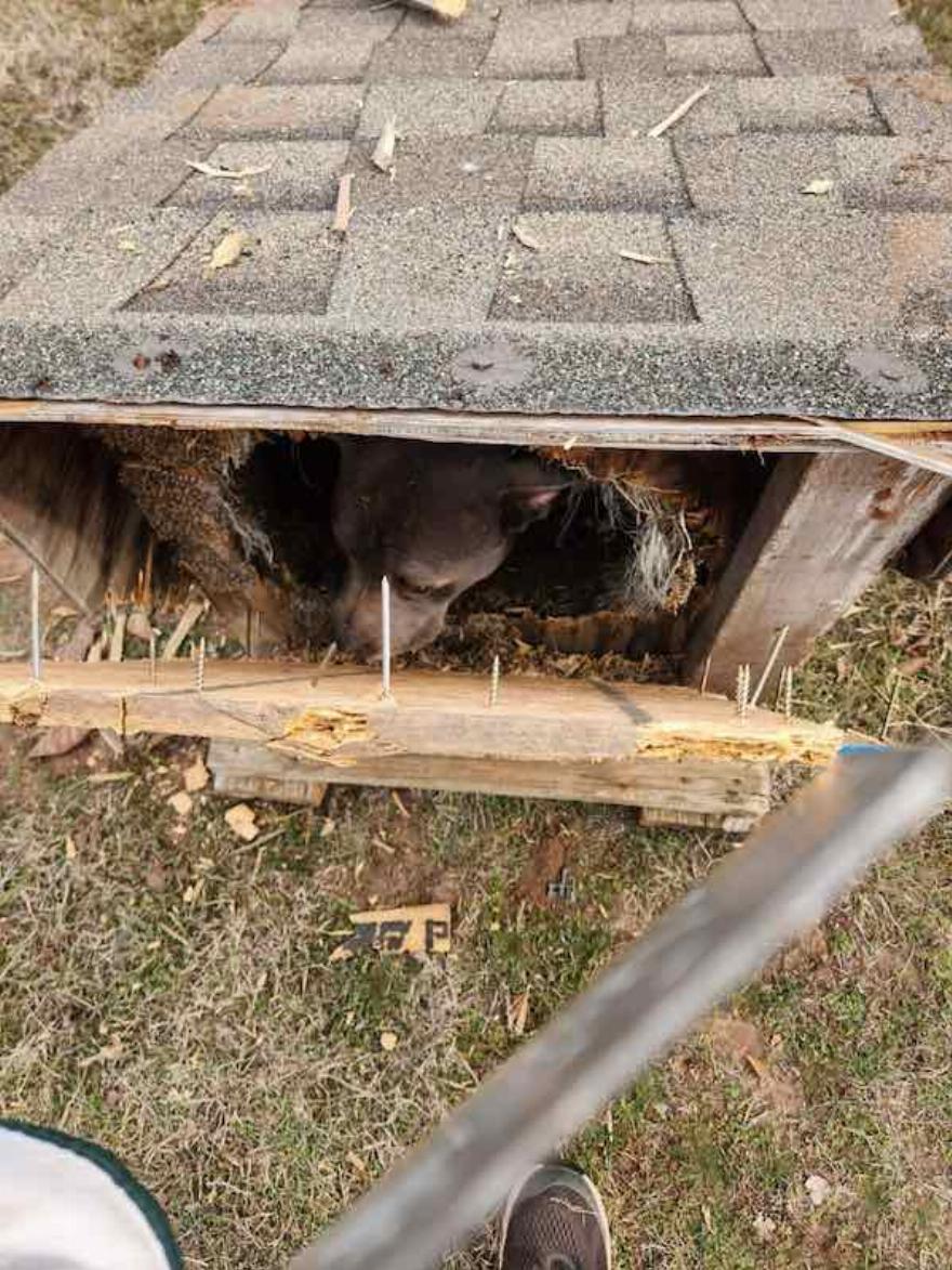 Ο σκύλος ήταν στριμωγμένος μέσα και μπορούσε να δει ότι ήταν υποσιτισμένος και γεμάτος γρατζουνιές και εκδορές.