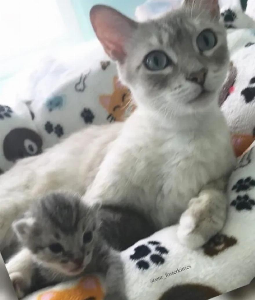 Θήλαζε και κρατούσε το γατάκι σχολαστικά καθαρό, όλο το εικοσιτετράωρο. “Ο Sunny την είδε ως την πραγματική του μαμά. Ήταν έρωτας με την πρώτη ματιά, σαν να τον γέννησε η Misty. Ήταν πολύ ενθουσιασμένη που είχε και πάλι ένα γατάκι να φροντίζει”.
