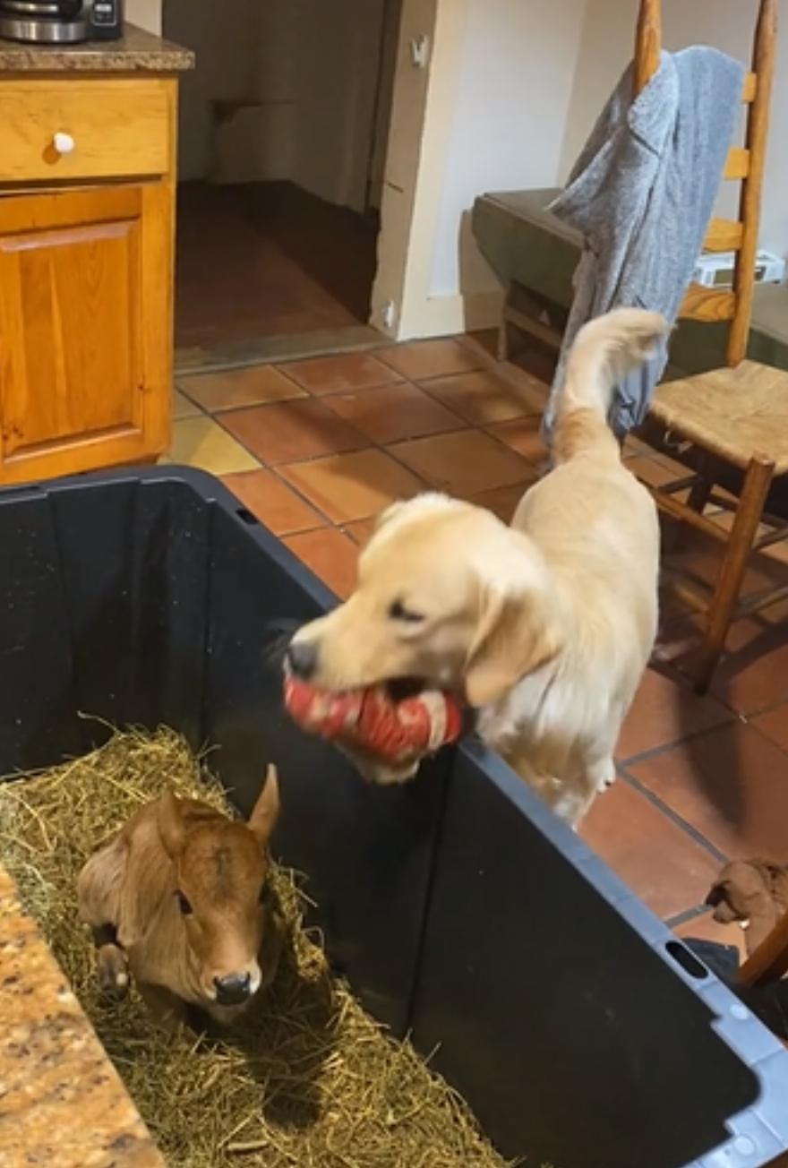 Υπάρχουν πολλοί λόγοι για τους οποίους τα γκόλντεν ριτρίβερ είναι ένα από τα πιο δημοφιλή σκυλιά της Αμερικής. Είναι στοργικά, τρυφερά και υπέροχα με άλλα ζώα, όπως αποδεικνύεται από τον Riley, το κουτάβι που απαθανατίστηκε από την κάμερα να προσπαθεί να κάνει ένα μοσχάρι να νιώσει σαν στο σπίτι του.