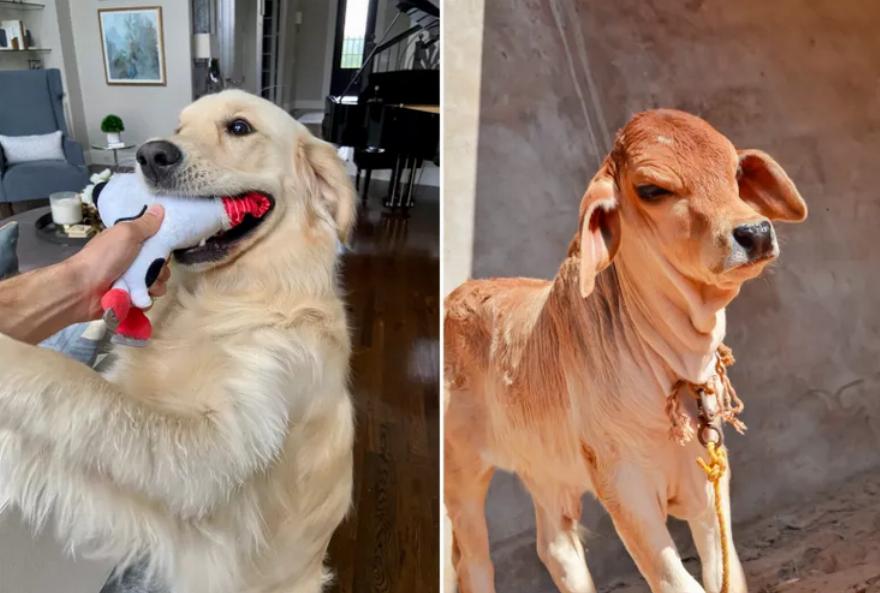Το κουτάβι φαίνεται να είναι ενθουσιασμένο καθώς το μοσχάρι ερευνά το αντικείμενο και στη συνέχεια σηκώνεται. Το κλιπ με τη λεζάντα “Ο Riley, το Golden retriever μας, μοιράζεται το παιχνίδι του με το μπιμπερό μοσχαράκι zebu” έχει λάβει περισσότερες από 6,2 εκατομμύρια προβολές.