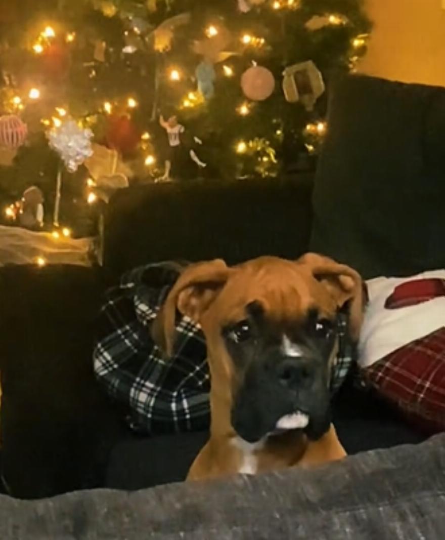 Στο viral κλιπ, που μοιράστηκε στο TikTok την Τρίτη με το όνομα χρήστη Grahammctavish1, το μπόξερ φαίνεται να κάθεται στον καναπέ και να κοιτάζει γύρω του μπερδεμένος και σίγουρα όχι χαρούμενος, αφού βρήκε ένα μεγάλο ψηλό χριστουγεννιάτικο δέντρο στο ίδιο σημείο που συνήθως στεγάζεται το κρεβάτι του.