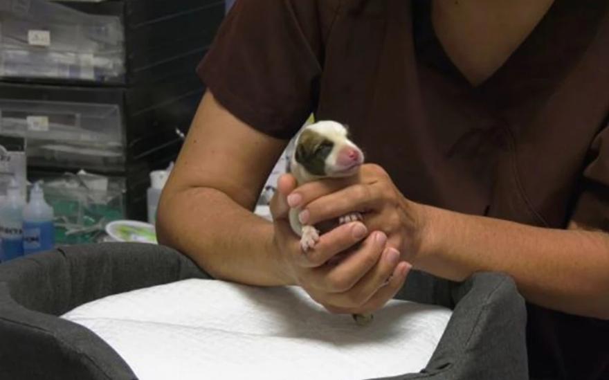 Ένα νεογέννητο κουτάβι κατάφερε να σωθεί την τελευταία στιγμή μετά από μια απίστευτη πτώση.
