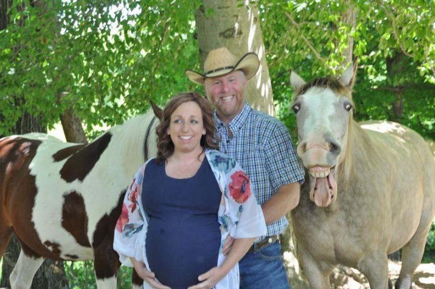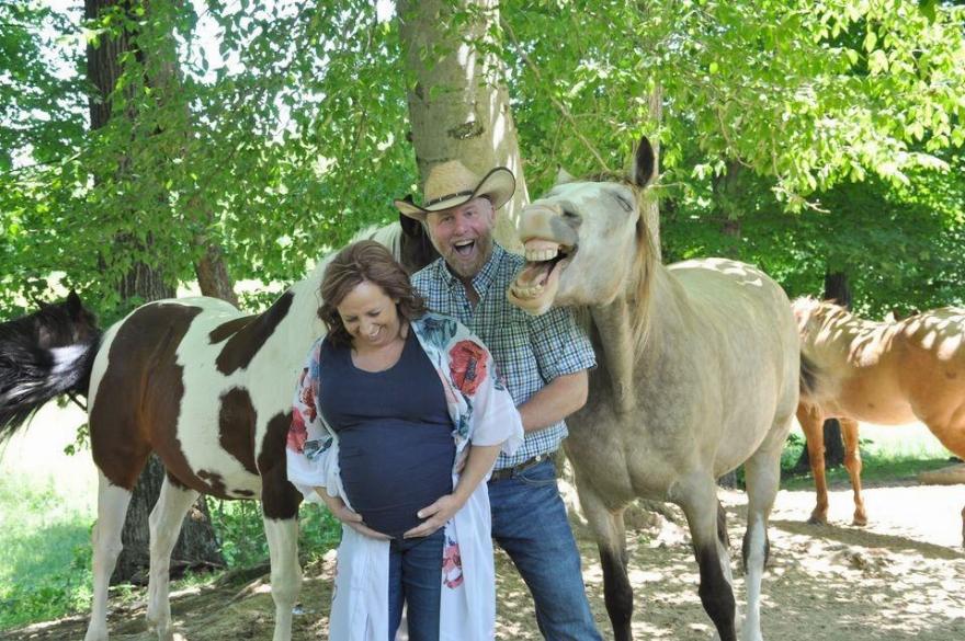 Αποφάσισαν να συμπεριλάβουν και τα άλογά τους στη φωτογράφιση. Η Kristen τους ζήτησε να χαμογελάσουν για να τραβήξουν τις φωτογραφίες, αλλά δεν ήταν οι μόνοι που χαμογέλασαν καθώς το άλογό τους αποφάσισε να χαμογελάσει και αυτό! Βλέποντας πώς χαμογέλασαν τα άλογα, το ζευγάρι άρχισε να γελάει!