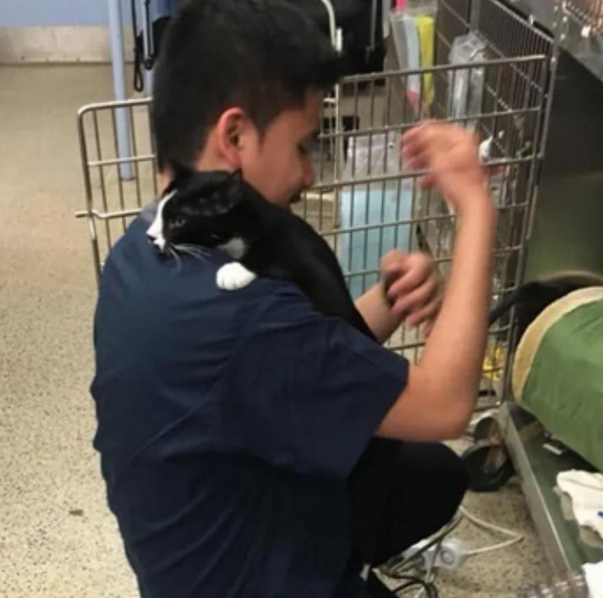 Η Kristen Nau, κτηνίατρος της PSPCA, βρέθηκε συνεχώς να εργάζεται με ένα αιλουροειδές βοηθό στην αγκαλιά της, όποτε βρισκόταν στο γραφείο. Ο Zorro αγκαλιαζόταν μαζί της και έμενε για ώρες όσο εκείνη δούλευε.