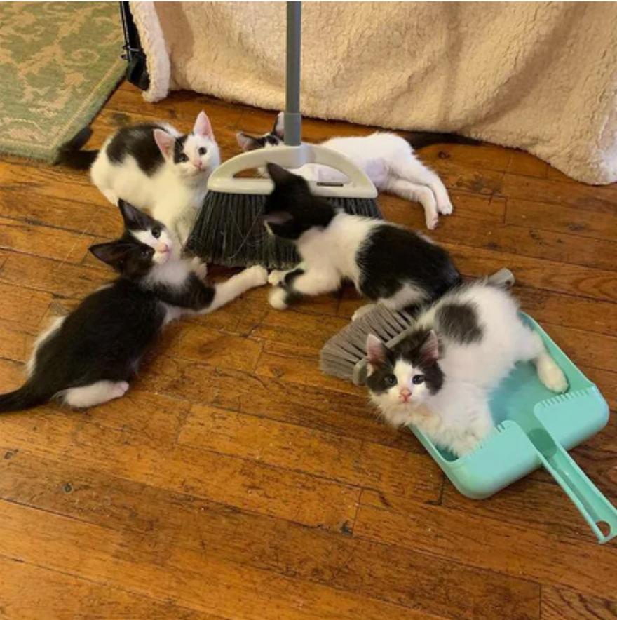 Κάθε φορά που η αγκαλιά της Molly δεν ήταν διαθέσιμη, τα γατάκια καταλάμβαναν το μεγάλο κρεβάτι και γέμιζαν το δωμάτιό με τα γουργουρητά τους. Μόλις η Molly έπαιρνε μια σκούπα για να καθαρίσει το δωμάτιο, τα γατάκια έτρεχαν για να “βοήθήσουν”.