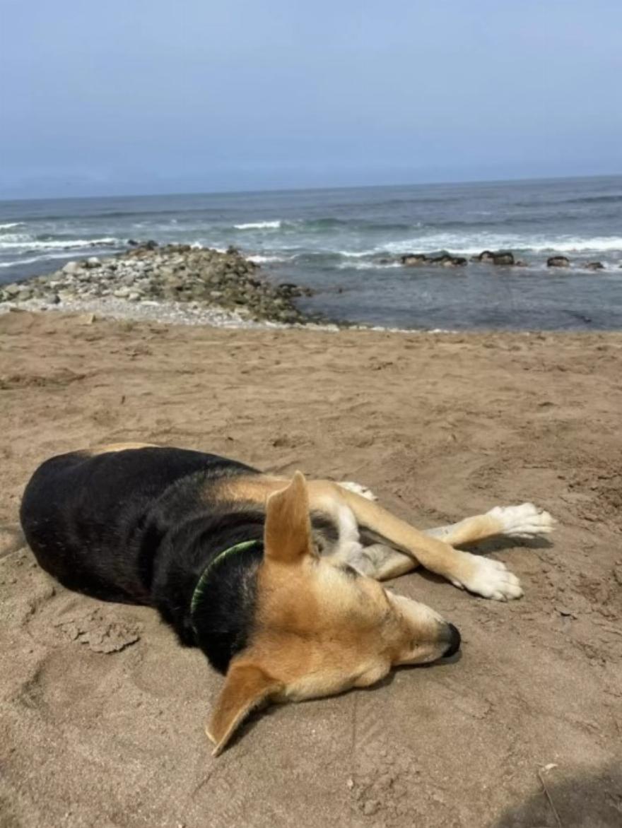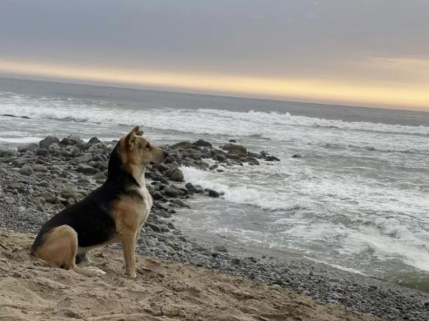 Αφού η Mejía και η οικογένειά της εγκαταστάθηκαν κατά μήκος της ακτής, τους πλησίασε ένας τυχαίος σκύλος που φαινόταν να είναι ολομόναχος.