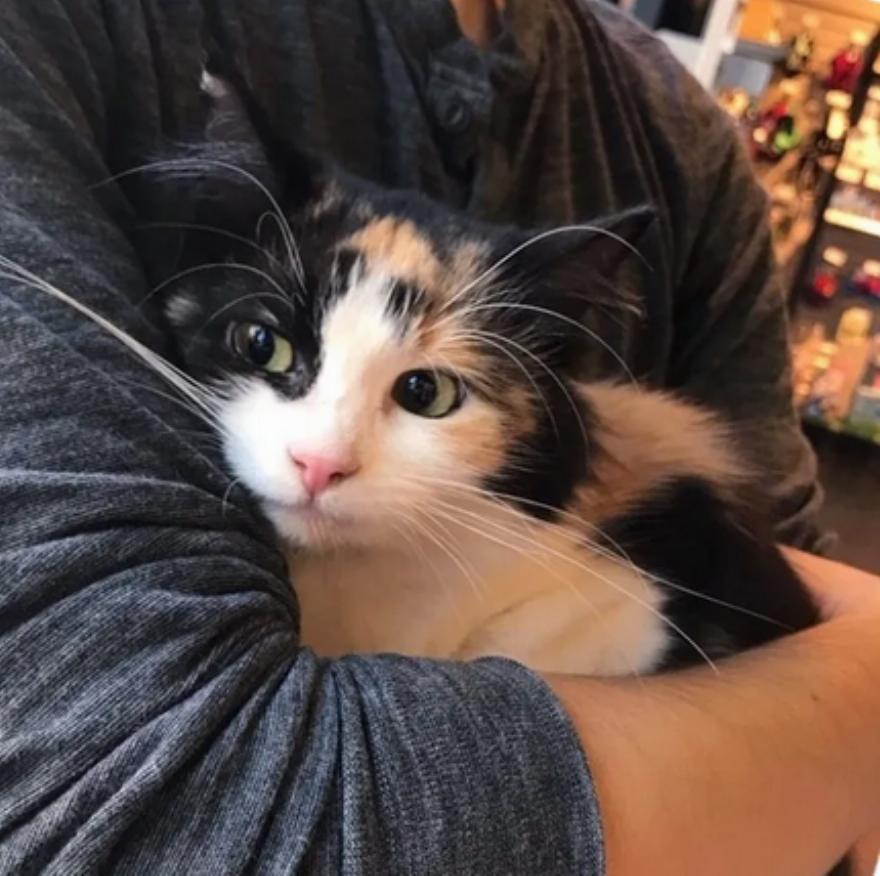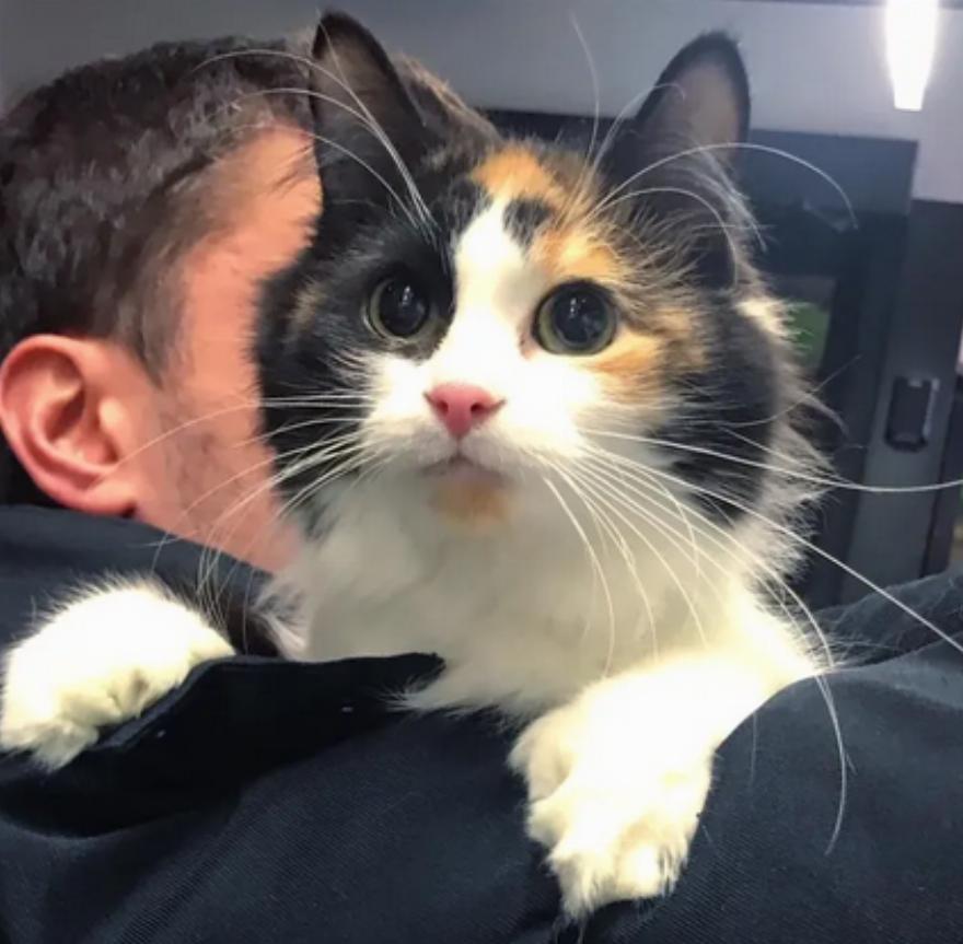 Ο Hadrien δεν μπορούσε να αποχωριστεί τη γλυκιά γάτα calico και την έκανε επίσημα μόνιμο μέλος της οικογένειάς του.
