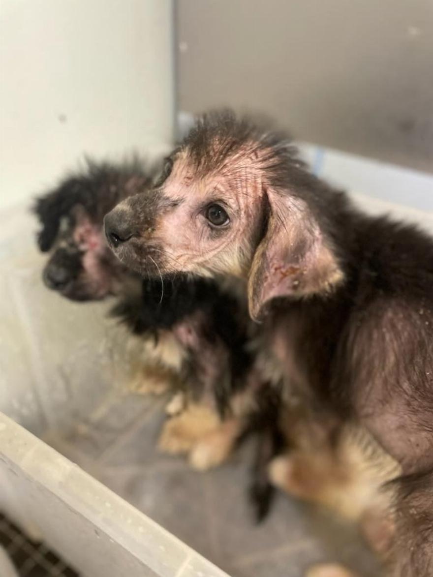 Ήταν σαν γέρος όταν βρέθηκε, με ζάρες και χωρίς τρίχωμα. Το μικρό κουτάβι ήταν σε τρομερή κατάσταση – μόνο δέρμα και οστά.