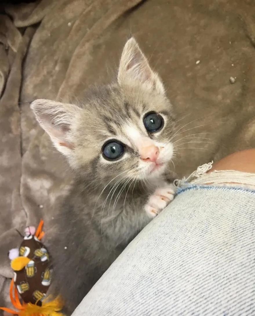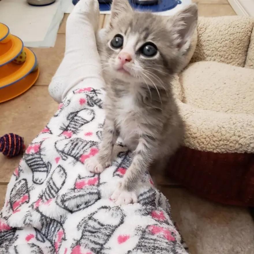 “Δεδομένου ότι είχα άλλα τέσσερα γατάκια στην ηλικία του και ήταν μόνο του, προσφέρθηκα να το αναλάβω”, δήλωσε η Ashley.