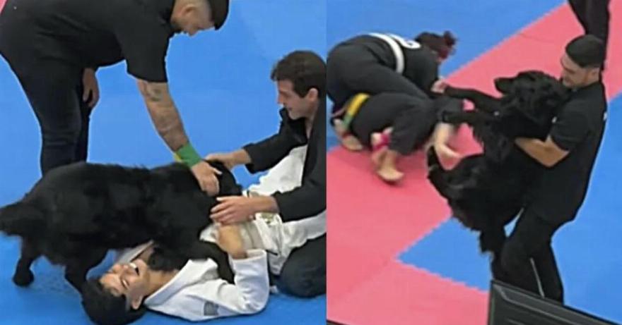 Ένας χαριτωμένος σκύλος αποφάσισε να σταματήσει έναν αγώνα σε διαγωνισμό Jiu Jitsu στη Βραζιλία, αφού κατευθύνθηκε κατευθείαν προς 2 ανταγωνιστές που πάλευαν στο χαλί. Η φύση του σκύλου είναι να προστατεύει τους ανθρώπους από το κακό, έτσι, πήδηξε πάνω από τον άνδρα με την λευκή ενδυμασία για να τον προστατέψει από το κακό.