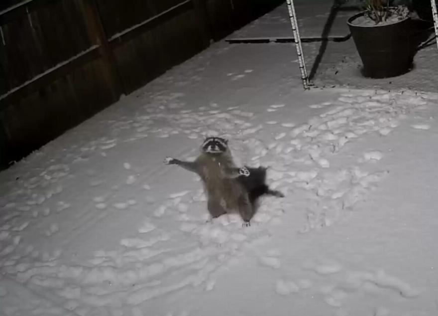 Χιόνιζε έξω, οπότε το ρακούν προσπαθούσε να κυνηγήσει νιφάδες χιονιού. Έτσι, ο Ellis ήξερε άμεσα ότι έπρεπε να απαθανατίσει αυτή την αξιολάτρευτη στιγμή σε βίντεο, καθώς πολλοί άνθρωποι θα ήθελαν να τη δουν.
