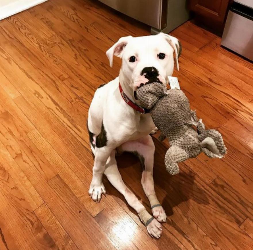 Ευτυχώς για το ευλογημένο μας κουτάβι, υιοθετήθηκε από έναν καλόκαρδο ιδιοκτήτη που τον τράβηξε η ζωηρή της προσωπικότητα. Η Erica, η νέα γούνινη μητέρα της Pigeon, δεν την είδε ως βάρος αλλά ως μέλος της οικογένειας. Χρειάστηκαν μήνες αποκατάστασης και φαρμακευτικής αγωγής για να μπορέσει το σκυλάκι να στηριχτεί στα μπροστινά του πόδια και να κινηθεί σέρνοντας τα πίσω πόδια του.