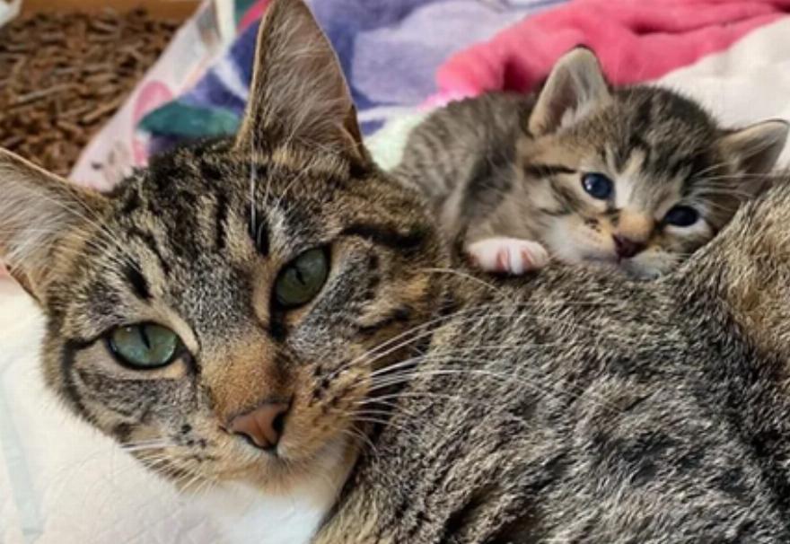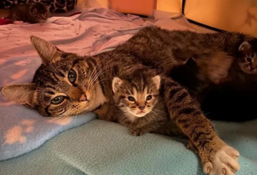 Περίπου μια ώρα αργότερα, η οικογένεια βρήκε έκπληκτη νεογέννητα γατάκια κάτω από το τραπέζι τους. Απευθύνθηκαν στην οργάνωση διάσωσης με την ελπίδα να βρουν σε αυτή την οικογένεια αιλουροειδών τη βοήθεια που χρειαζόταν.