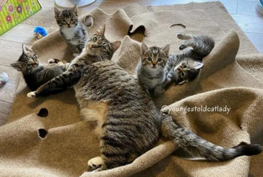 “Η Moira πριν αποκτήσει τα γατάκια της, ζούσε έξω, κοιμόταν κάτω από ένα συγκρότημα διαμερισμάτων και ζούσε με φαγητό που άφηναν έξω για τις γάτες”, είπε η Ashley.