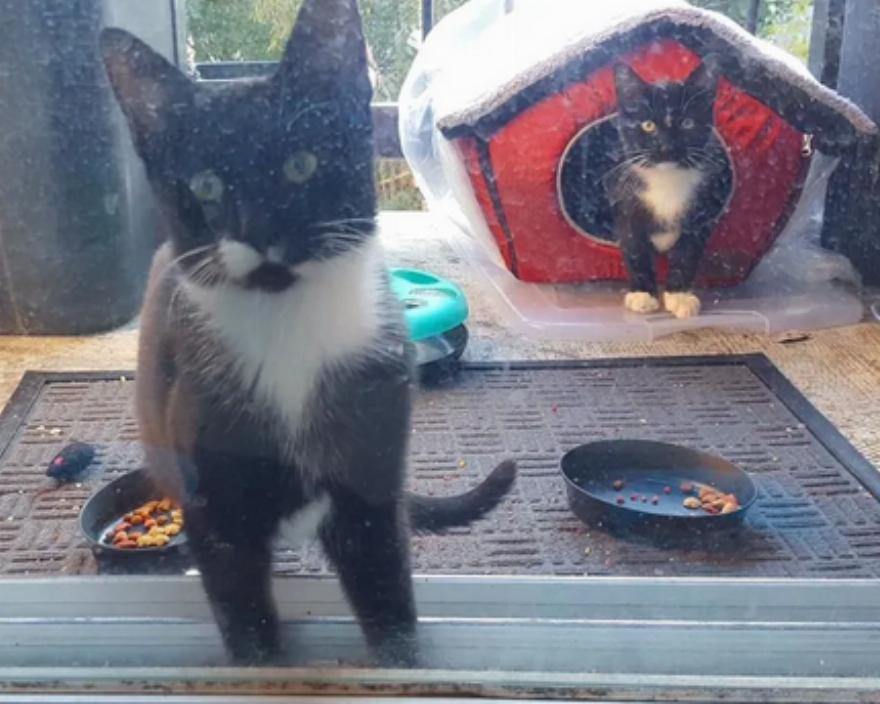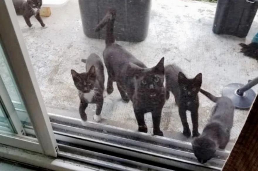Νωρίτερα φέτος, μια μαύρη επιθετική γάτα εμφανίστηκε στη βεράντα τους για ένα μερίδιο από το φαγητό. Όταν επέστρεψε αργότερα, δεν ήρθε μόνη της – έφερε ολόκληρη την οικογένειά της μαζί της.