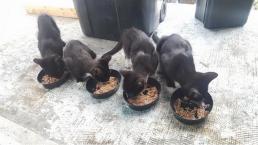 Περιττό να πούμε ότι ενθουσιάστηκαν με το φαγητό και τα ζεστά σπιτάκια για γάτες που τους προσφέρθηκαν. Η μαμά γάτα έδειχνε να είναι ικανοποιημένη που άφησε τα γατάκια στα χέρια του ζευγαριού.