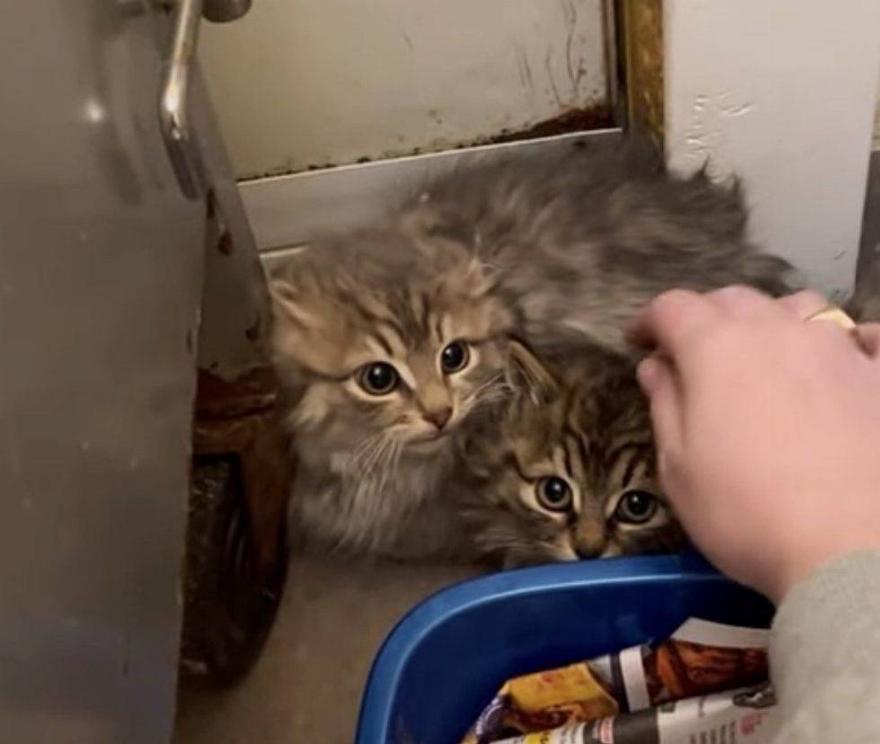 Τα δύο μακρύτριχα γατάκια, η Λίλιαν και η Τζίλιαν, δεν είχαν ποτέ αλληλεπιδράσει με άνθρωπο μέχρι που διασώθηκαν και μεταφέρθηκαν σε ανάδοχη οικογένεια. Ήταν περίπου δύο μηνών και χρειάζονταν απεγνωσμένα κοινωνικοποίηση.