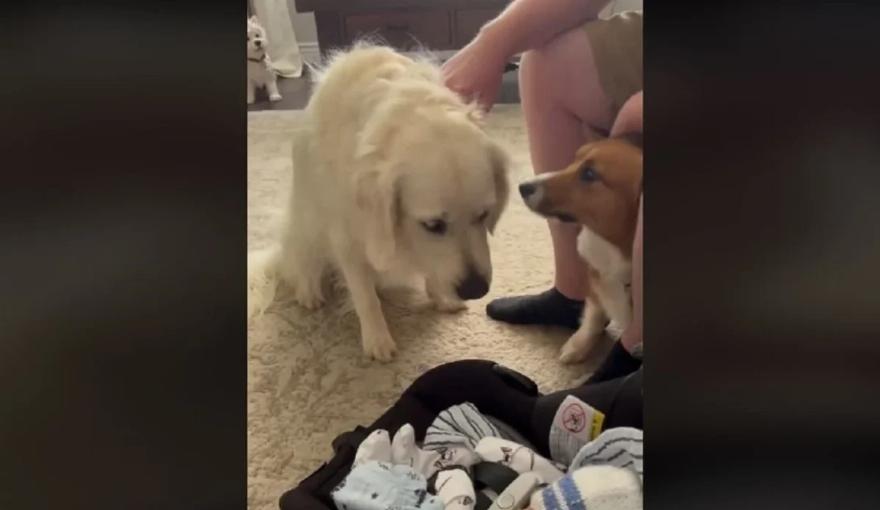 Ένα γλυκό βίντεο που δημοσιεύτηκε στο Tik Tok στις 23 Σεπτεμβρίου μας δείχνει πώς οι σκύλοι εκφράζουν τη χαρά τους όταν γνωρίζουν κάτι νέο. Στο βίντεο, βλέπουμε έναν γκολντεν Ριτρίβερ να συστήνεται στον νεογέννητο αδελφό του για πρώτη φορά, και η αντίδρασή του είναι απλά αξιολάτρευτη.