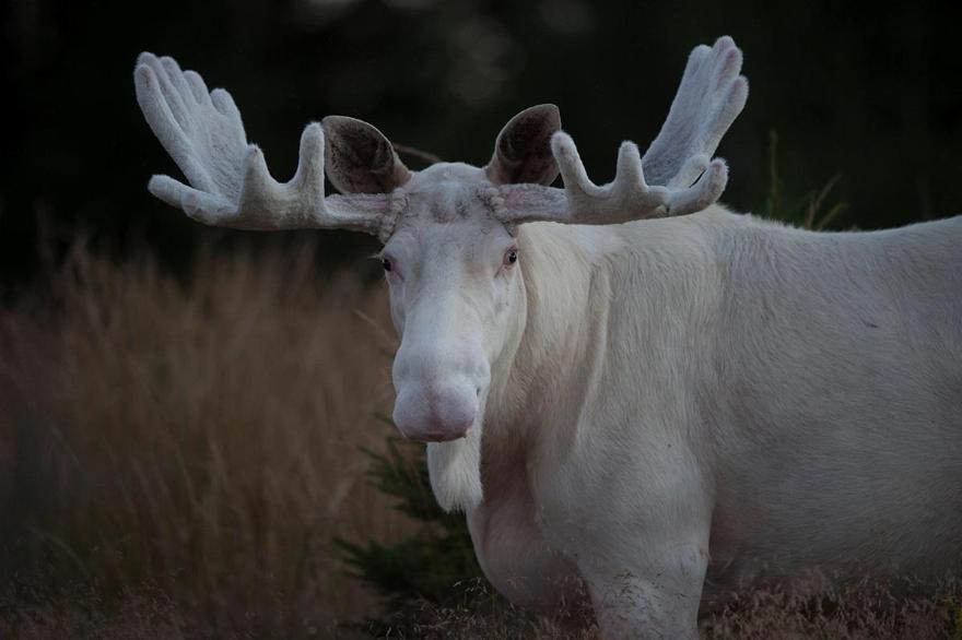 Οι ωραίες φωτογραφίες του από τη λευκή άλκη δείχνουν το μεγαλείο του Värmland. Η αλήθεια είναι ότι ο τάρανδος πάσχει από πιεβαλδισμό, μια γενετική πάθηση που επηρεάζει το χρώμα του δέρματος.