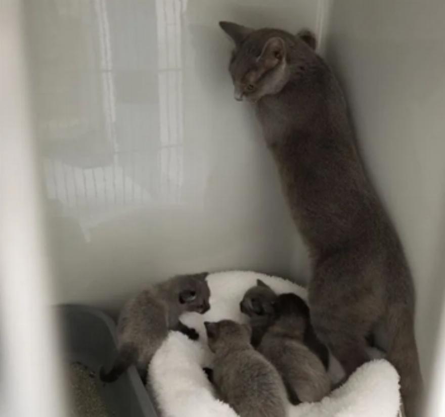 Η οικογένεια των αιλουροειδών πέρασε μια δύσκολη πρώτη νύχτα, καθώς η μαμά γάτα δεν είχε συνηθίσει να βρίσκεται σε εσωτερικό χώρο.