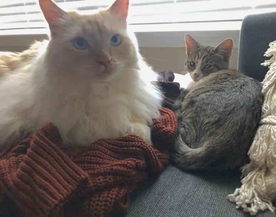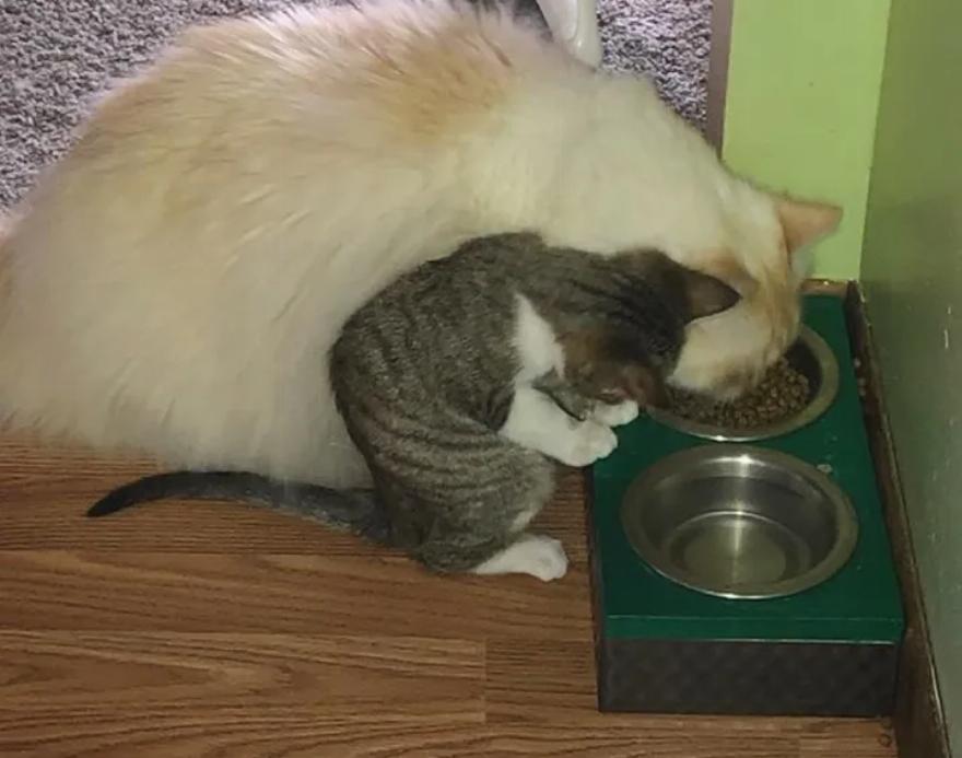 Η ατίθαση γατούλα γρήγορα συμπάθησε τον αιλουροειδή φίλο της. Λίγες εβδομάδες μετά τη γνωριμία τους, οι δύο τους δέθηκαν πραγματικά, κάνοντας τα πάντα μαζί.