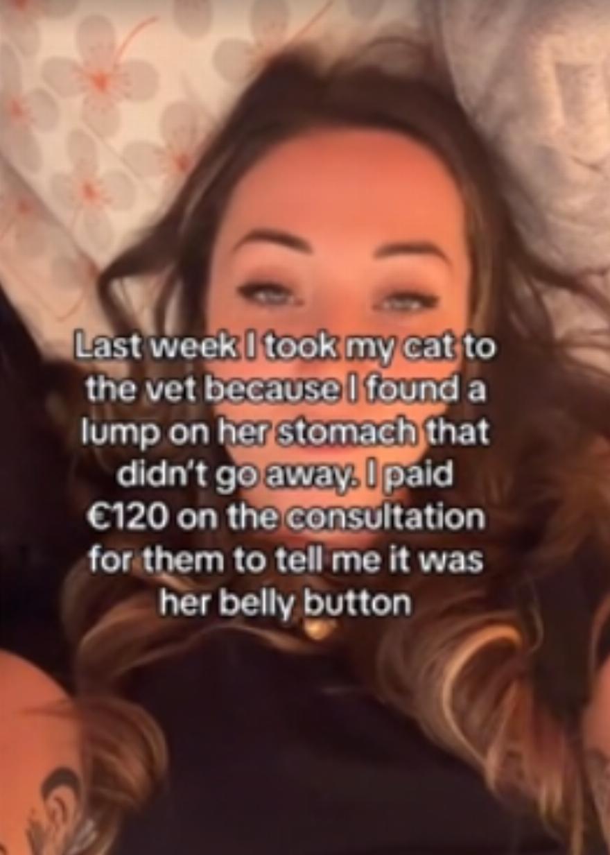 Η Gigi ανέβηκε στο TikTok για να διηγηθεί την εμπειρία της, όπου συχνά καταγράφει τα καμώματα των κατοικίδιων ζώων της. Το βίντεό της, το οποίο συγκέντρωσε γρήγορα την προσοχή, είχε λεζάντα “Την περασμένη εβδομάδα πήγα τη γάτα μου στον κτηνίατρο επειδή βρήκα ένα εξόγκωμα στο στομάχι της που δεν έφευγε. Πλήρωσα 120 ευρώ για τη συμβουλή για να μου πουν ότι ήταν ο αφαλός της”.