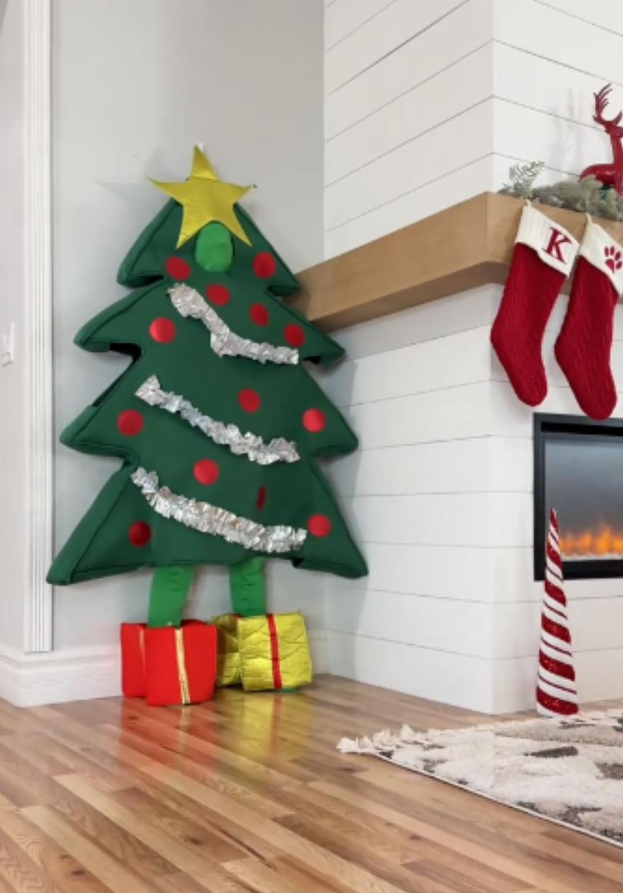 Το κοστούμι του χριστουγεννιάτικου δέντρου ήταν ιδανικό για να κρυφτεί, και είχε ακόμη και ένα πράσινο κάλυμμα που πήγαινε πάνω από το πρόσωπο. Αυτή είναι μια εξαιρετική δραστηριότητα εκπαίδευσης μυρωδιάς για το σκυλί και το μυαλό της σίγουρα δούλευε υπερωρίες προκειμένου να βρει τη μαμά της.