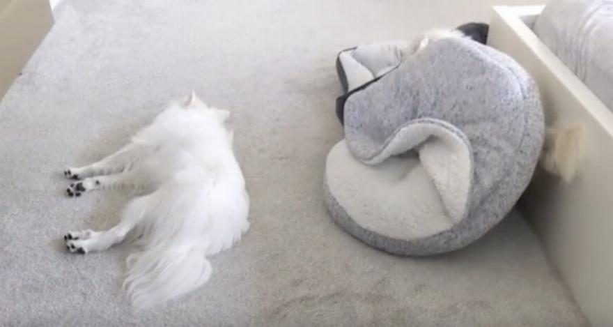 Κοιτάζει αθώα πριν αποφασίσει ότι το κρεβάτι είναι ακριβώς εκεί που το ήθελε και πέφτει για έναν υπνάκο.