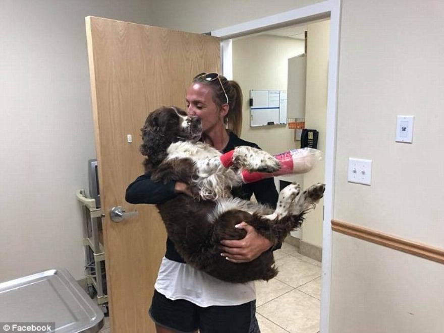 Το σπρίνγκερ σπανιέλ είχε τραυματιστεί σοβαρά και οι γονείς του είχαν εξαφανιστεί. Η Τία γνώριζε καλά ότι αν τον άφηναν εκεί, θα έχανε τη ζωή του.